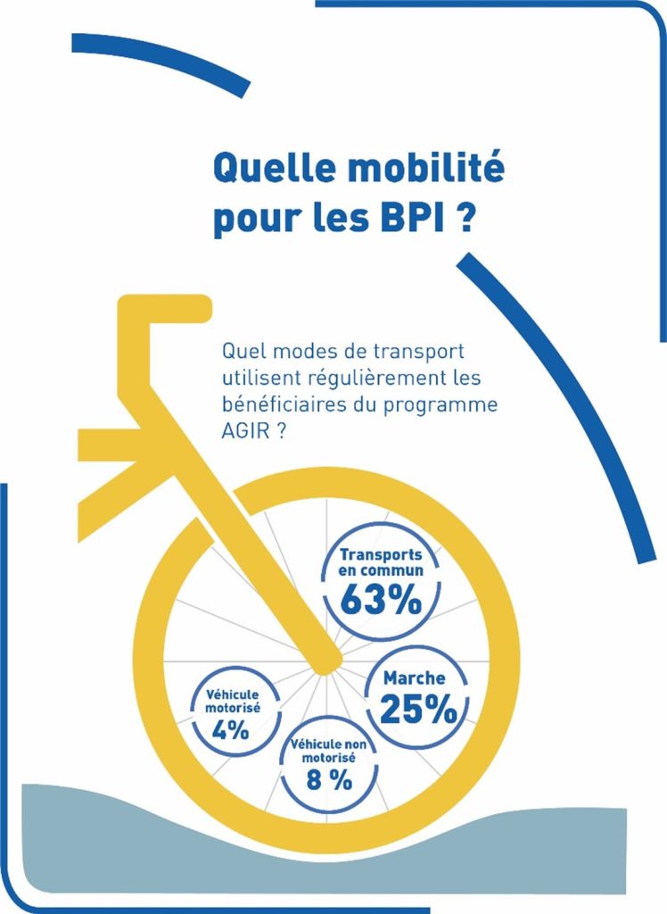 Grâce aux données de suivi du programme AGIR opéré par l’association, nous pouvons avoir un aperçu des pratiques et des enjeux de la mobilité pour les BPI accompagnés.