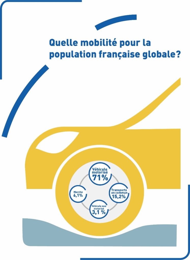 Par rapport à la population française globale le contraste est fort comme le montre la comparaison avec l’enquête mobilité travail de l’INSEE :