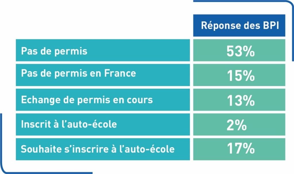 Ceux qui n’ont pas de permis et n’ont entamé aucune procédure en ce sens représentent tout de même 68% des BPI.